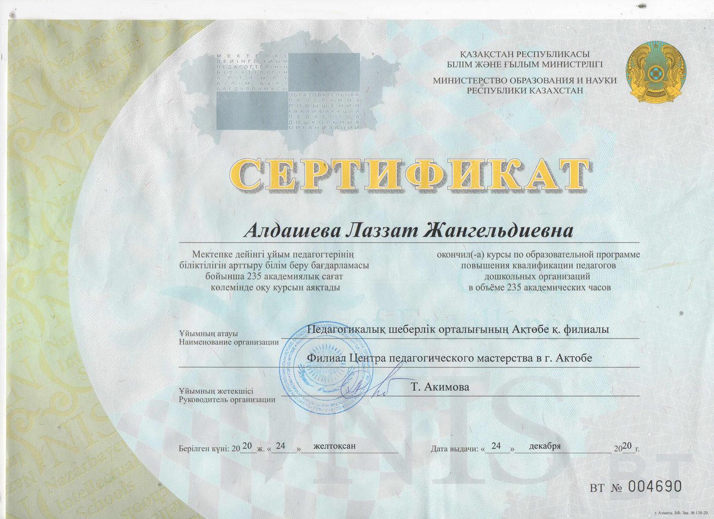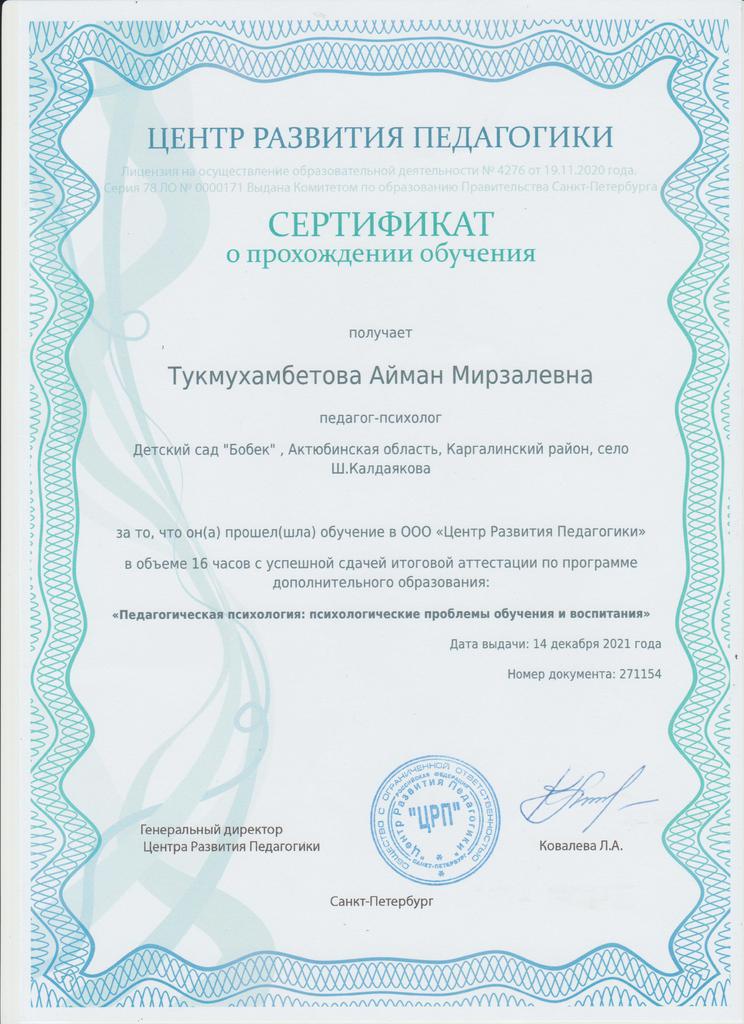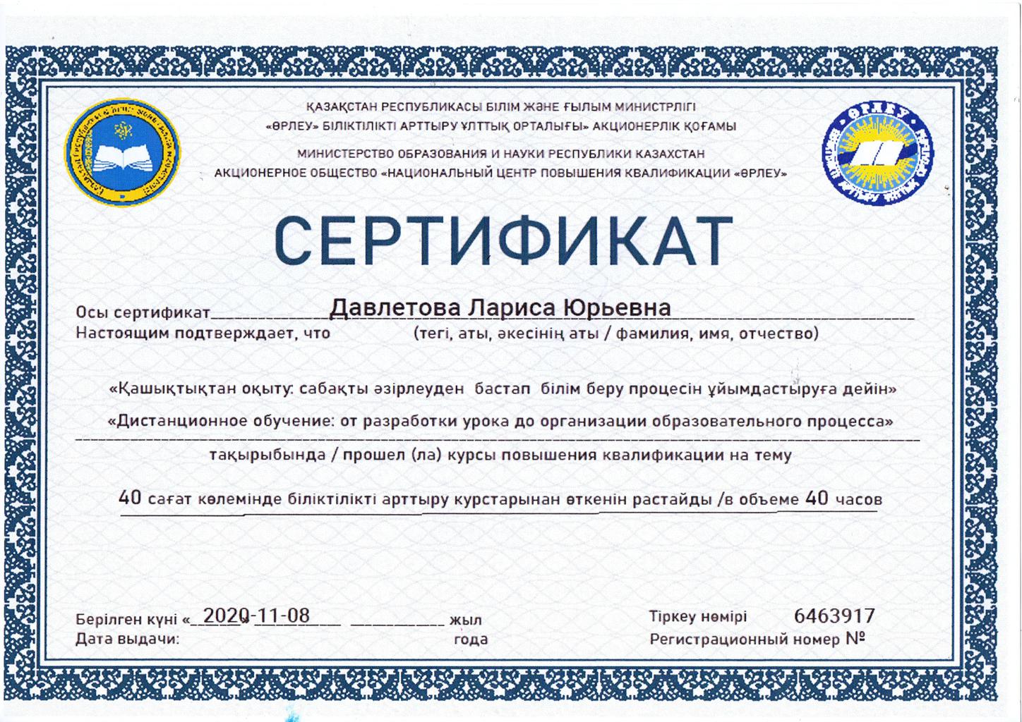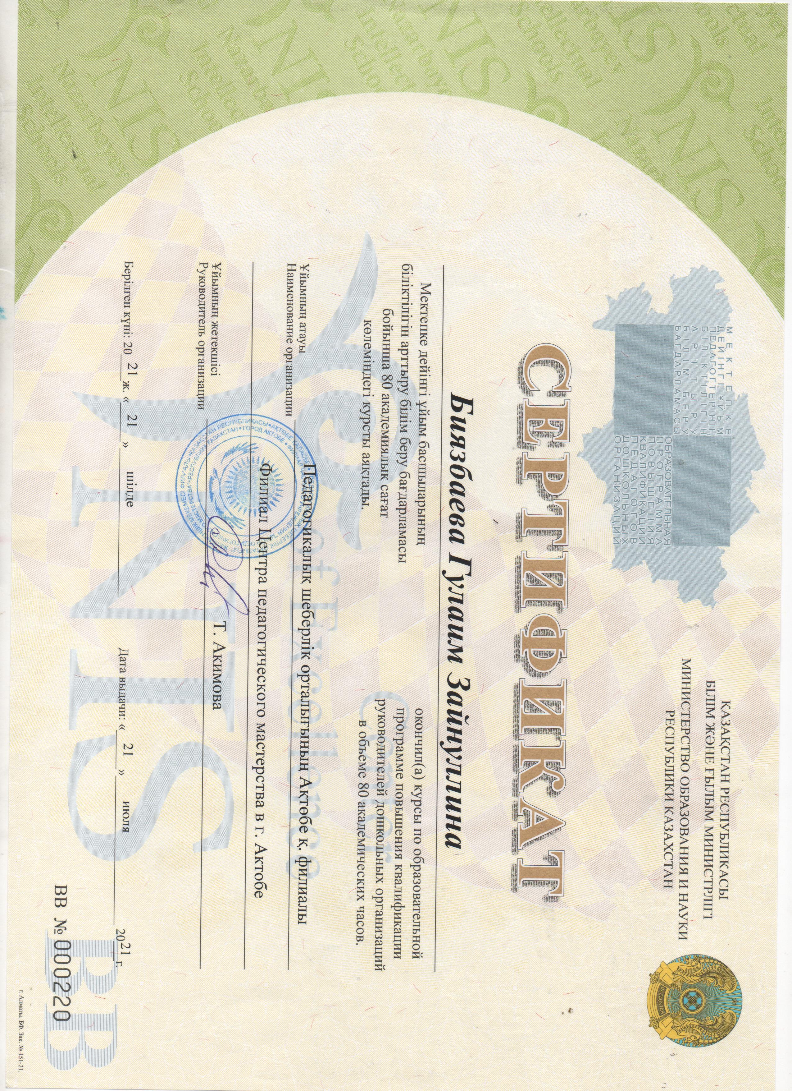 Сертификаты курсов повышения квалификации