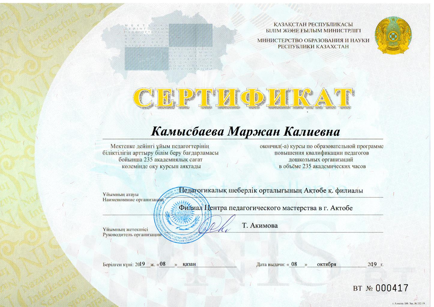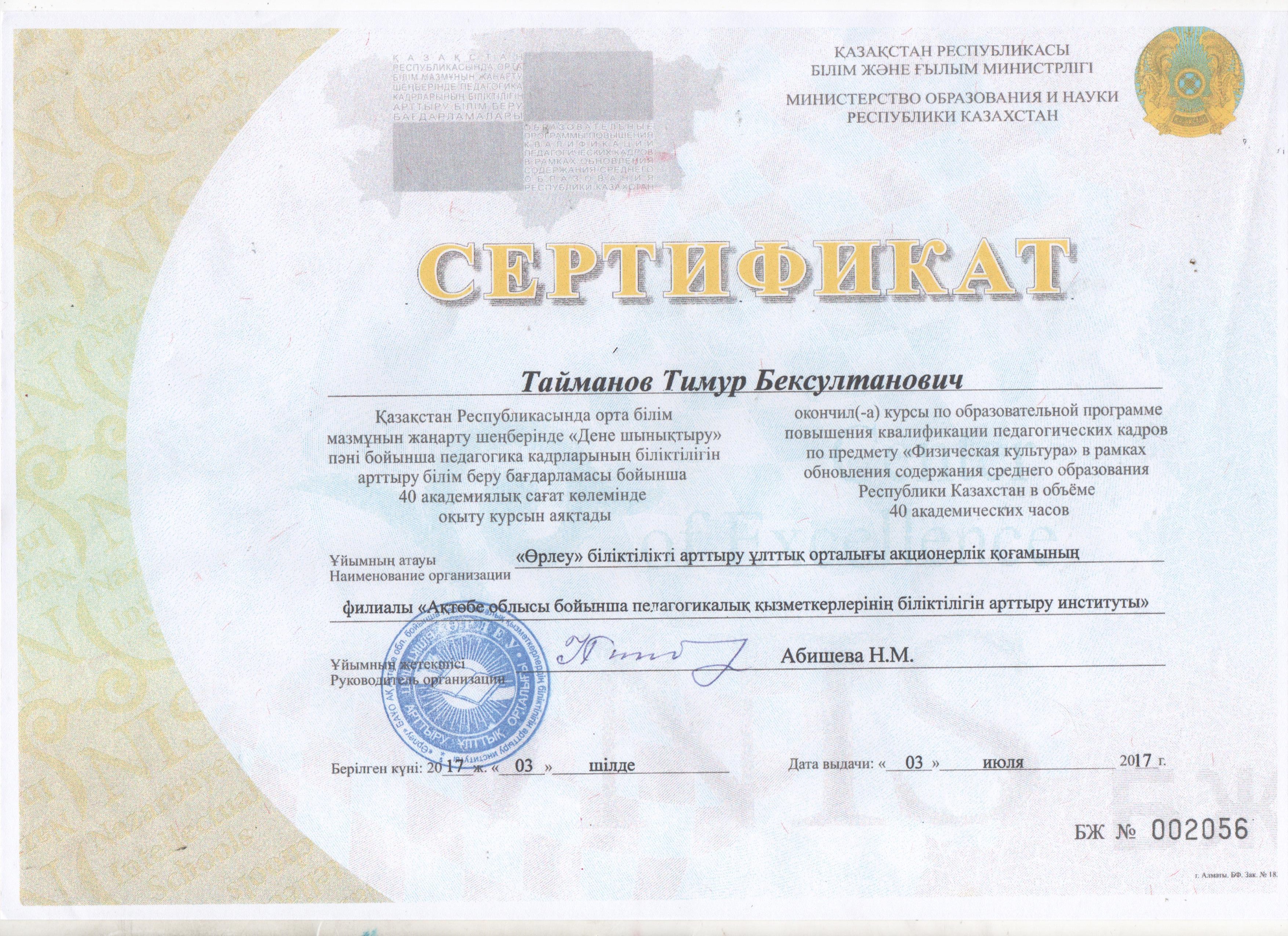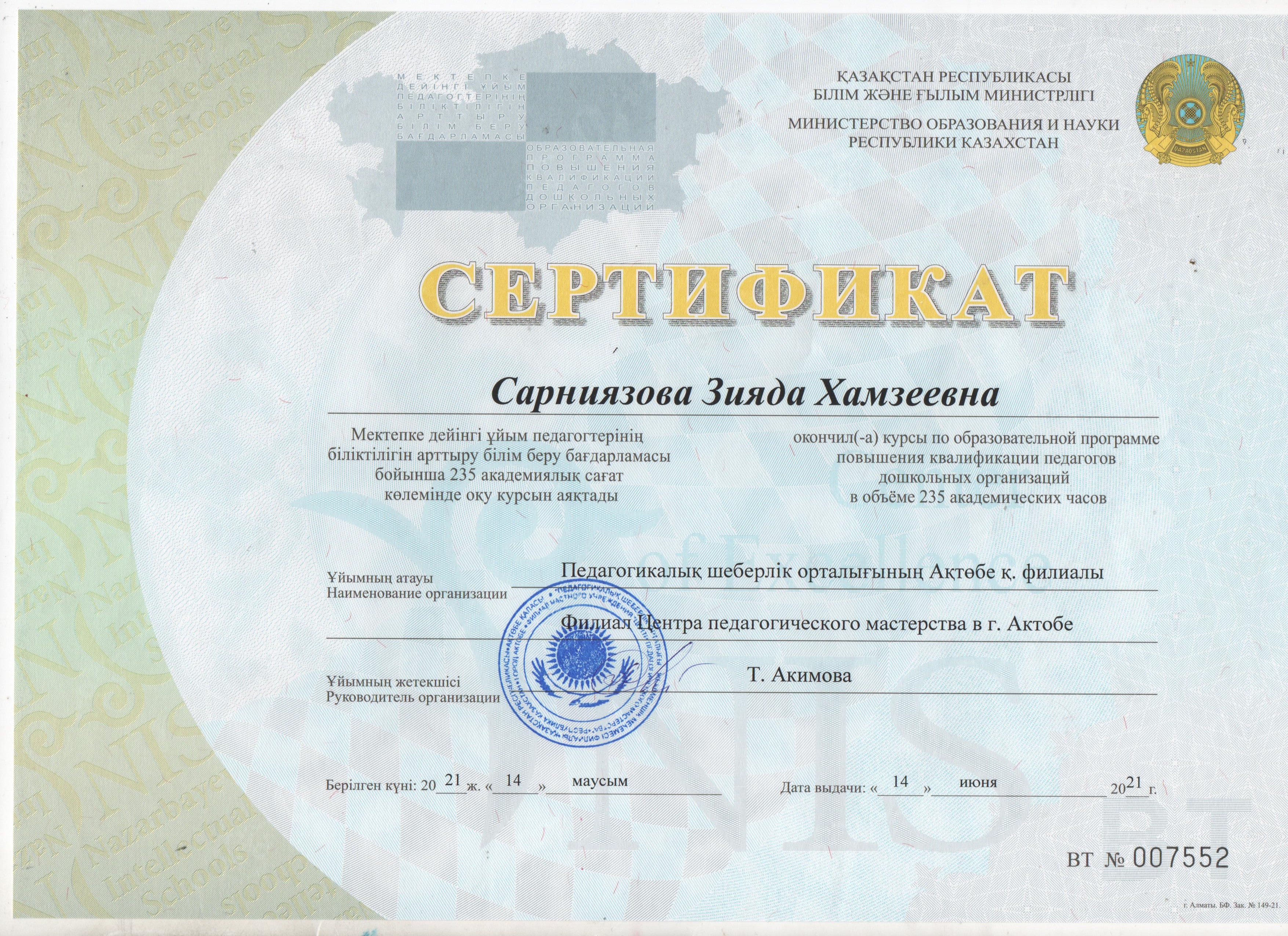 Сертификаты курсов повышения квалификации