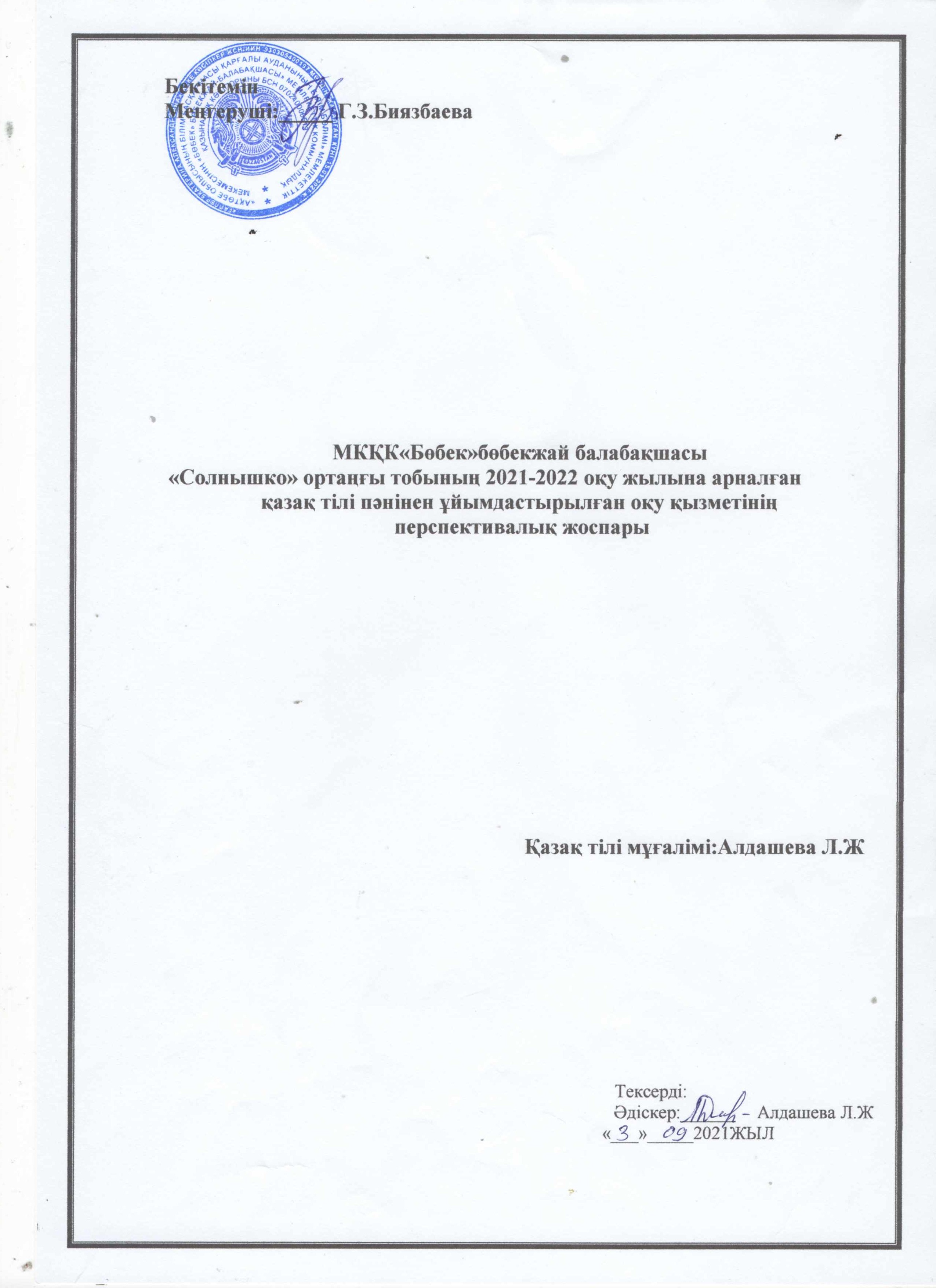 Қыркүйек айы. 2021ж Өтпелі тақырып: «Балабақша» |